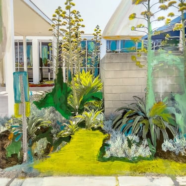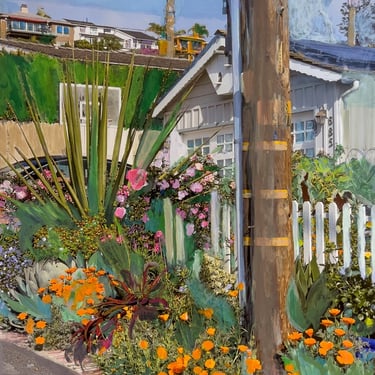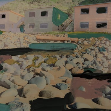 In ideal coastal California these images appear inviting and then grow troublesome with closer viewing. The rot and debris all painted out, the colors spill over in competition for attention, the water fills in... the California dream is alive but not necessarily well here.