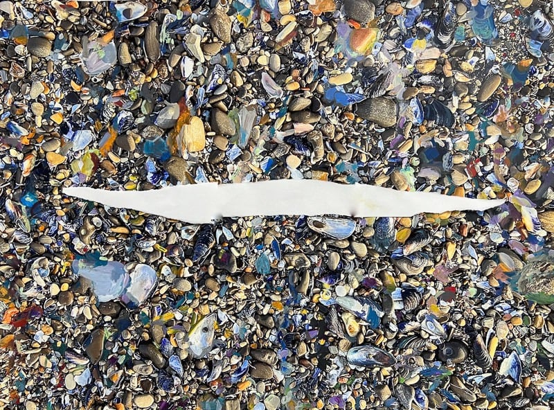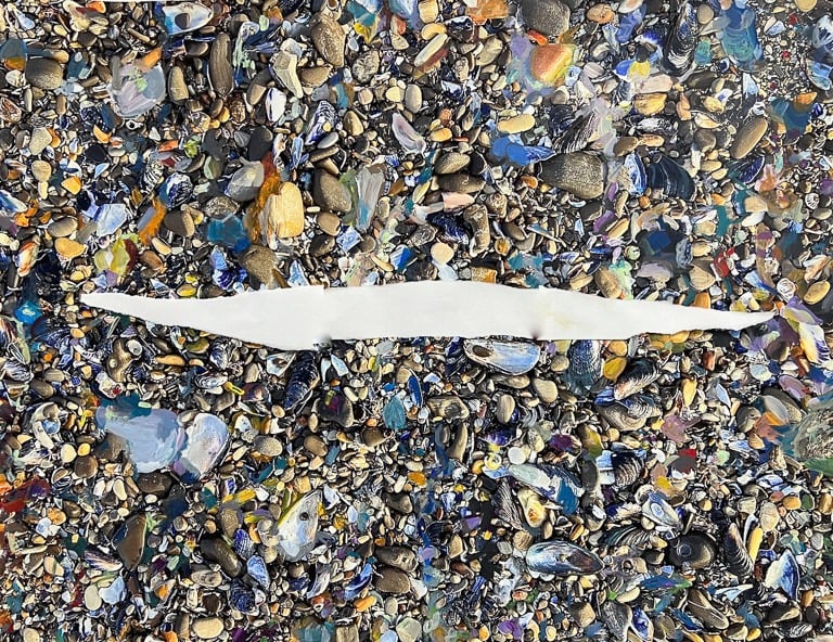 These are based on a rocky beach in Northern California. The rocks are a wish for things to be true and steady but even the most elemental objects become subject to time, emotion, and perception with the layering of paint over the photographic images.